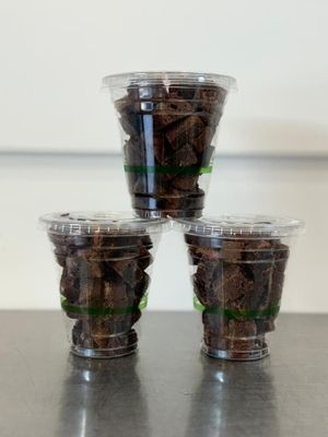 Two Hot Brownies with chocolate sauce and sprinkles - No gelato or cream as the gelato melts under the hot brownie during delivery